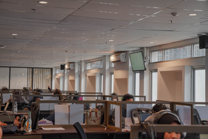 The remodeling process began with the creation of a custom work station where the work space was designed with plywood, equipped with glass dividers and clear glass frames. The renovation results make a room looks wider, open space and equipped with ergonomic furniture.